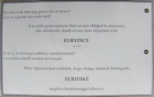A zsinában helyet foglalva a székre terített gyásztáviratban szembesülünk a hírrel, amely mély fájdalommal tudatja, hogy az imádott feleség, Eurüdiké halott. Nem is baj ez, hiszen jócskán kell várnunk a következő mosolycsalogatóra, és ráadásul a néző is tudhatja: honnan vegye fel a fonalat. Így talán nem gabalyodik bele a történetbe („ez már az alvilág vagy ez még nem az”), és láthatja azt is, hogy a tavalyi Lesz Kurbasz Odüsszeia-parafrázisánál jóval átgondoltabb a produkció az első perctől kezdve. Nem is súgdolódzik annyit senki. De ne becsüljük alá a nézőt, akinek a legnehezebb feladat jutott: eldönteni, hogy meddig fokozható a szerelem mozgással, fénnyel, szavakkal és zenével. Ha pedig mindezt eldöntötte, akkor bátran, röhögéssel jelzi.