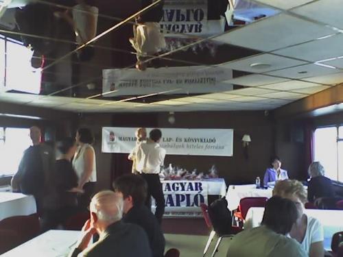 Irodalmi hajókirándulást szervezett szerzőinek a Magyar Napló szerkesztősége. Az eseményre a könyvhét rendezvénysorozata előtt került sor. A kettészakadt írószövetség maradó "fele" szervezte volna a túrát, de e sorok írójának a régi, "teljes" médiahajók emlékétől tölten, az írószövetség "másik fele" is hiányzott a Budapest motoros fedélzetéről.