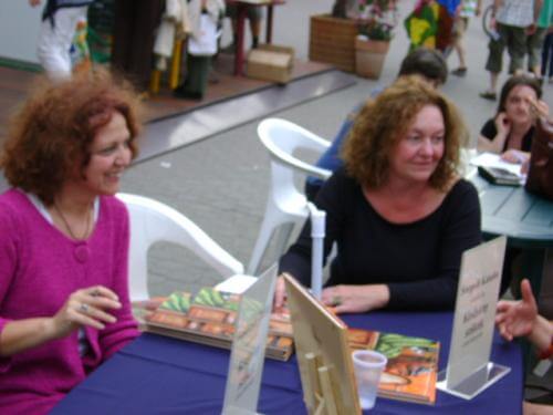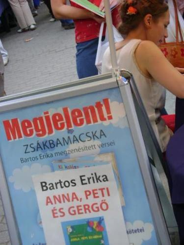 Mindig élénk érdeklődés kíséri a gyerekkönyvek szerzőit. Ha hazavinni nem is lehet az összes szép könyvet, lapozgatni azért jó. Bartos Erika mosolyogva állta a gyerekhad rohamát.