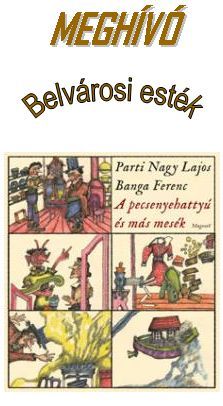 BELVÁROSI ESTÉK. Parti Nagy Lajos és Banga Ferenc volt főszereplője a sorozat első rendezvényének, melynek helyszínéül a Szinyei Galéria udvara szolgált (Fő tér. 10). Parti Nagy Lajos, aki többször járt városunkban - most első alkalommal a könyvesbolt vendégeként - számos könyvbarátot vonzott. Előadásában A pecsenyehattyú és más mesék című kötet bölcs és tanulságos meséi számos alkalommal nevetésre ingerel-ték a közönséget...