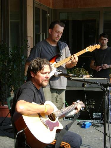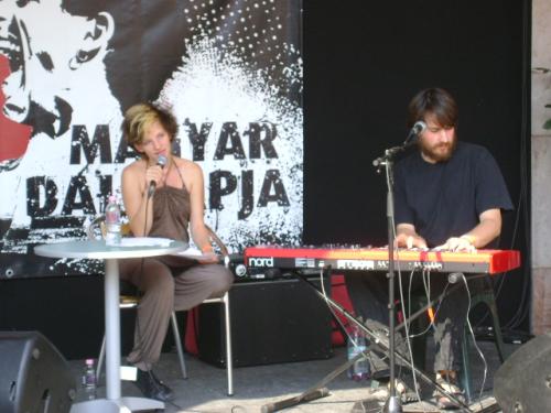 Élvezettel hallgattam a fellépőket, de a dohányfüst egyre fojtogatóbb lett. Az Odüsszeiát is meggyalázó botrányhőst, Paizs Miklóst vendégül hívó Pop Iván után döntöttem úgy, hogy átvágok a városon, a Zöld Pardon szabadtéri színpadához. Ahol a Heaven Street Seven finom, akusztikus műsorát követően a huszonöt éve népszerű Pál Utcai Fiúk lépett fel, Lovasi Andrással kiegészülve. Máskor a PUF énekese, Leskovics Gábor vendégeskedik a Kispál-koncerteken, most azonban a Pál Utcai Fiúk legénysége kísérte a pécsi dalnokot, hogy elénekelje a MOL-kútnál című lírai Kiscsillag-dalt: „Épp most szoptam le egy benzinkutast / Vizet hörpölök az ondóra / Mikor mögém lép egy szemüveges / És elkezd várni a mosdóra…” Lecsóék természetesen megtáncoltatták a közönséget saját számaikkal, aztán mentek át a Gödörbe, hogy éjjel ott is fellépjenek. Mint Kardos-Horváth János, aki Jamie Winchester vendégeként elzongorázta a Tartós béke című Kaukázus-dalt, majd iparkodott vissza a Magashegyi Underground koncertjére. Hiszen nélküle nem kezdhettek volna.
