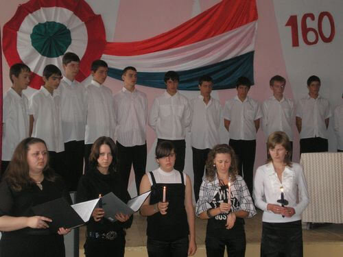 Emlékműsor keretében emlékeztek meg az aradi hősökről a Beregszászi Zrínyi Ilona Középiskolában is, ahol a rendezvényt megtisztelte jelenlétével Pethő János beregszászi konzul.