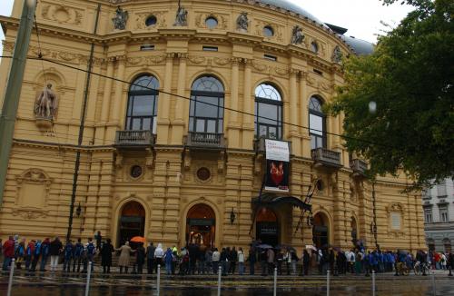 A koradélutáni órákban egyetemi zenekarok, versmondók és színházi csoportok mutatkoztak be a színház előcsarnokában felállított színpadon.