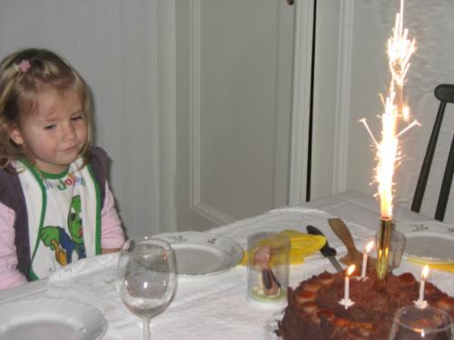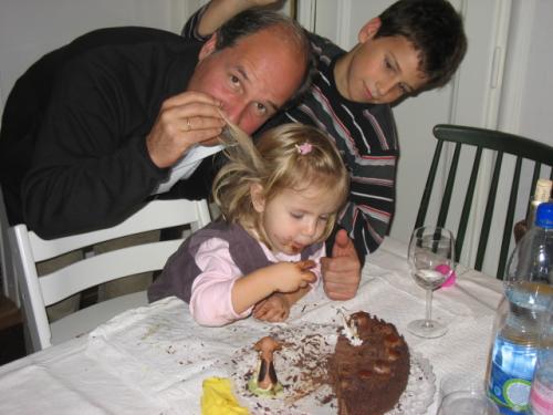 Annyi születésnap után, ami mind a másé volt, és amit hiába kértem, hogy legyen az enyém, most végre lett egy teljesen sajátom. Azt meséli édesanya, hogy éppen hétfőn három éve már édesapa is beöltözött, és hogy déltájban aztán megjöttem. Ez olyan érthetetlenül szép és mindenki olyan furcsán néz, hogy tetszik nekem is. Azzal kezdődött a születésnapom, hogy pénteken megjött nagypapa, szombaton megkóstolták Enéhéknél az erdélyi töltött káposztát, csülökdarabokkal, apa megette a zöldséglevesét és egy kicsit hősnek érezte magát. Vasárnap reggel apa eltűnt és boldogan érkezett meg egy narancsos trüffel tortával, ami csupa reszelt csoki, és volt hozzá egy foltos szép kutyus a tetejére marcipánból, de eldugták délig. Nagymama és Édesanya hatalmasat főzött, megjött Johanna aki az unokatestvérem és hozta az Édesapját, Bandit és Krisztikét is. Mise után pedig a Berecz Család Lilluska, András, Pityu, Misike és Marci, akivel nagyon jól lehet vadulni. Mihály azt mondta, hogy azért hasonlítok a zsemlére, mert én is ennivaló vagyok. Előbb mindenki ivott, aztán evett, aztán megint koccintottak, jött a torta, a tűzijátékkal, és elfújhattam a három (ujjamon tudom mutatni) gyertyát, és már senki nem szólt rám, hogy ne kenjem össze magam csokival. Mindenki Daubnert dicsérte, de ő nem is volt nálunk, csak a sütije. Az ajándékosztás aztán: ruhácskákat, nadrágot, számolós mesekönyvet, aminek a gombját nyomkodni lehet, és a Hamupipőke, meg a Piroska és a farkast kaptam DVD-n. (Apának nagyon nem tetszik, hát állandóan velem nézi.) Amíg el nem alszik, mert amikor a dolgozóból hazazuhan, nem nagyon lehet már vele játszani. Mondtam is neki, hogy apa „ne haljál, meg, te nem szoktál meghalni”. Hogy ezen miért nevetnek a felnőttek? Pedig komoly. Ahogy a születésnap is, ami mégiscsak nagy dolog lehet, ha ilyen érdekes.