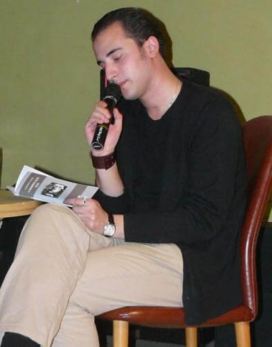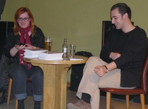 Első kötetes ifjú költő révén ez az este nem csak a könyvnek, de Lázár Bence Andrásnak is bemutatkozása. Középiskolában az irodalmi esszékre általában ötöst kapott, de Radnótira csak négyest, no, egoista dühtől vezérelt - akkor még kamasz - hősünk el is határozta egyből, hogy majd ő jobb verset ír, mint Radnóti. Azóta persze a düh csillapodott, az egoizmusra pedig nem tért ki a beszélgetés, azzal nem tudom mi van.