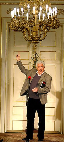 A színpad fölizzik, egy magas, fekete ember hangja tölti be a termet, aki nem jön zavarba, nem esik ki a szerepéből, kézben tartja az eseményeket. Álmomban még nem láttam, de ébrenléteim kevésbé színes, de annál gondterheltebb kavalkádjából előhúzok egy nehezen elfelejthető nevet: Turczi István, a házigazda. Mindenki mosolyog, mindenki jól öltözött, értő, látó, halló, vagy legalábbis úgy tesz.