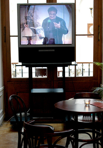 A büfében aztán nagyon is valósághűen zajlanak az események: sör, bor, kávé, mosolyok, az előző est pletykái, ki mit írt… félre -és lenézések, időnként egy-egy spontán Gloria-val megszakítva. Mereven ülök, ez csak álom, csak álom, hajtogatom, próbálom megőrizni szalon-arcomat, nem észrevéve azt a tekintetet, nem meghallva a gúnyos nevetéseket, nem elszédülve az olykor merészen tömény tömjéntől.