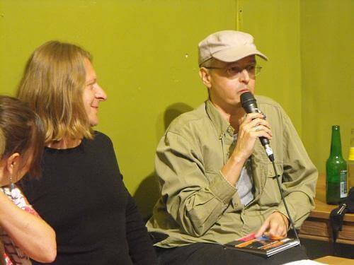 A nem Hazai, hanem Ménes Attila által felolvasott regényrészlet, a Hidegdauerből való volt. Attila már többször hozott belőle nekünk részeket a műhelyes megbeszélésekre is. Pár fejezete olvasható az Alföld, a Jelenkor és a Műút hasábjain. Hát igen. E regény pont annyira szocreál – bár a „szocreál környezet” összetételt nehezen tudom értelmezni – mint mondjuk Krasznahorkai László és Bodor Ádám szövegei, vagy éppen Garaczi Lászlóé. Az zavarhatta meg kritikusunkat, hogy a történet még a szocializmus idején játszódik. Ménes narratív eljárása a szocialista realizmussal azonban semmiképp nem köthető össze, én inkább kissé flaubertiánusnak érzem, Juli én vagyok, mondhatná Ménes, de egyfajta posztmodern „történelmi regény”-ként is olvashatjuk, s ezzel rokon Garaczi újabb prózájával, melyből az esten szintén kaptunk ízelítőt. Laci Arc és hátraarc című harmadik lemur-regényének elejéből és végéből olvasott fel. A lemur-történetek gazdag recepciójából szemlézve, csak a történelem és az értelmezés ironikus olvasatára hívnám fel e helyütt a figyelmet.