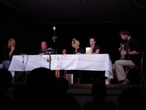 Az Isten madárkái – budai világ egy felvonásban címet viselő félórácskát rádió-szín-házasítva, vagyis helyszíni rádiójáték gyanánt adták elő nekünk. Felvétel nem készült. A díszlet – ha egyáltalán – célratörő-minimál. Fekete ingek, fehér abrosz, háttérben fekete drapéria. Történik egy körülült asztalnál, akarom mondani egy madárkereskedésben. Az asztalon elszórtan madárra emlékeztető tárgyak, madáreleség, a plafonon héliumtól dagadó keblű lufibagoly – ’süketnéma, vagyis nem huhog’ – a színészek gyöngyöző homlokán díszmadár madárdísz. Pál András – halmozza a szerepeket ezen a délutánon – konferálja fel az előadást, ő működik közre, továbbá mindenféle betévedő vevőként, s formál pár mondatból – ülve – karaktereket, ő magyarázza kihangosított wikipédiaként az avíttnak ható kifejezéseket, ódonnak ható szlenget, szófordulatokat. Lass Bea az elkelt, nagyszájú, cserfes kerítőnő, s hozzá dalos pacsirta (madárboltban mi más?) szerepében is éppen csak annyira harsány, amennyire ezt a szerep megköveteli. Kifogástalan komika. A bolttulajdonos eladó sorban lévő leány – Szabó Vera – kissé harmatos naivát hoz, akihez éppen illik Tóth Géza félszeg tollnoka, aki – ó ártatlan lelkek, Isten madárkái – kezdetben valami díszes pintyre gerjed, s csak utána, a kerítő díszpinty heves közbenjárására fordul meg fejében a házasulási szándék. A KeresztHuzat Társulat előadásának legnagyobb értéke az volt, hogy jókat kacagtunk rajta. Ez pedig azt jelenti, hogy élettel töltötte meg, frissé tette a szöveget, mindezt a felcicomázott világ lemeztelenített, kelléktelenített ábrázolásával.