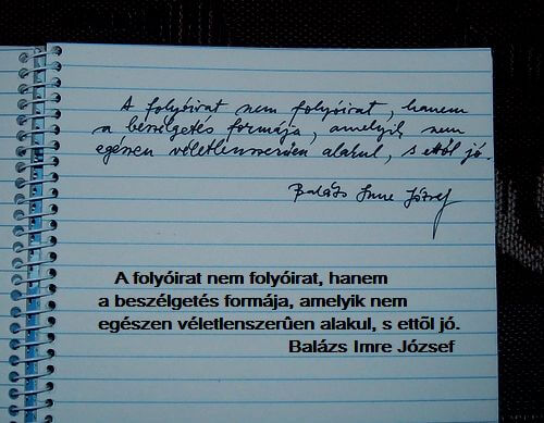 Magyar nyelvű irodalmi folyóiratok, szerkesztő hölgyek és urak, Árkos (Románia, Erdély, Kovászna megye), 2010. szeptember kilencedikétől tizenkettedikéig. Innen, a világ másik szegletéből valók az EGY MONDATok a KORTÁRS MAGYAR IRODALOMRÓL.