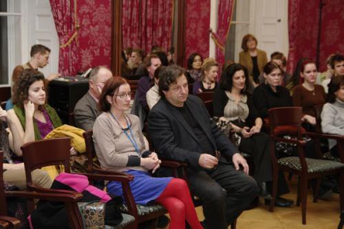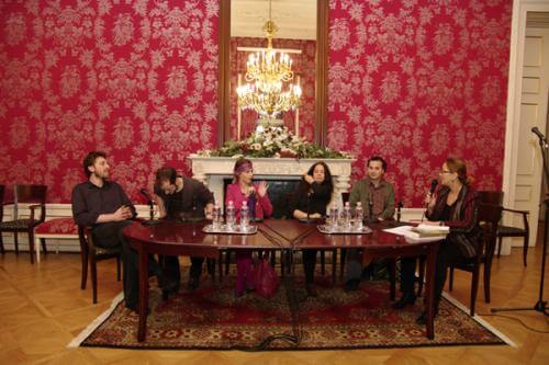 a pergő reflexióknak a lehetőségét, azért mégis számos értékes tényre derült fény, mind az írók magántörténeteinek, mind az általuk felemlegetett, közkincsnek számító példák tárából. Ez utóbbiakból elég Tandori, Krasznahorkai, Háy János köteteire gondolni, ahol kép és szöveg szoros összhatásából születik meg a mű, de számos képzőművész, fotós neve is elhangzott Pauer Gyulától Korniss Péterig, akiknek alkotói helye kifejezetten az irodalom erőterében határozható meg. A „magántörténetek” között olyan változatos példák szerepeltek, mint a Karafiáth Orsolyát megihlető berlini bestiárium-kiállítás a Hamburger Bahnhofban, vagy Erdős Virág egy verse, amely az Ernst Múzeum egy közelmúltbeli kiállításának installációjára született, illetve Weiner Sennyey Tibor versei, amelyek sokszor folytatnak párbeszédet Kiss Márta és Szarka Fedor Guidó festményeivel. Krusovszky Dénes kevésbé a saját élményeivel hozakodott elő, viszont sorra jutottak eszébe a két művészeti ág kölcsönhatását erősítő alkotások, s ily módon lassacskán kirajzolódott a kép, amelyet Simon Márton is megerősített: egyáltalán nem beszélhetünk dialógushiányról és éles elkülönülésről. Ahogy Erdős Virág jegyezte meg érzékletesen: a képzőművészet befogadásának valójában legadekvátabb módja, ha újrateremtjük magunkban a képet, és valami más formában, adott esetben szavak segítségével fogalmazzuk meg azt, amit számunkra jelent. Erdős Virág felvetései számos további diskurzus lehetőségét magában hordozó kérdések voltak, az oda-vissza hatás, a folytathatóság megvalósulásának lehetőségétől kezdve a kép(ek)hez írott vers más kontextusban, a képtől független közegben való közlésének nehézségéig.