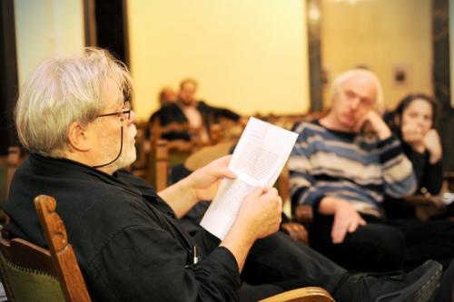 Parti Nagy Lajos abból a művéből olvasott fel részletet, amely a nyári Lettre anyagában szerepelt – ennek a lapszámnak a kibővített változata jelent meg kötet formájában német nyelven (Die Wende Begann am Balaton – „A fordulat a Balatonnál kezdődött” a kötet címe.) Valójában a Karádi Éva és Regine Möbius szerkesztésében megjelenő, számos magyar író művét tartalmazó kötet megjelenése szolgáltatta az apropóját, hogy a decemberi összejövetelen ezek a prózarészletek hangozzanak el. Ahogy a kötet címe is szatirikus utalás a Balatonpartot a nyolcvanas években elárasztó kelet-német turisták és a magyar családok között létrejövő baráti (vagy kevésbé baráti), politikába tovagyűrűző viszonyokra, úgy a felolvasások is a későszocialista időszak iróniával megragadható abszurd ellentmondásaira fókuszáltak. Parti Nagy Lajos hangsúlyozta, hogy e Balaton-szövegét az időhiányból fakadóan még messze nem érezte késznek, amikor az antológiába odaadta, de a felolvasott részlet „partinagyos” humorán ebből mit sem lehetett észrevenni.