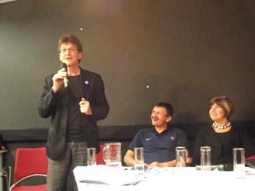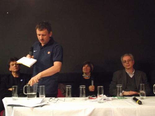 Vitaindító gyanánt a Műfordítók Egyesületének elnöke, Halasi Zoltán számolt be a magyar műfordítók körében végzett legutóbbi felméréséről. Ebből igencsak szomorú kép rajzolódott ki előttünk az irodalom „remetéinek” helyzetéről: ma már gyakorlatilag nem létezik főállású műfordító, de még azok aránya is csak 50%-ra rúg, akik a munkaidejük felét töltik fordítással. S ami még ennél is borúsabb, hogy ez utóbbiak jövedelmének mindössze 30-40%-át teszi ki a honorárium. Nem csoda, hogy a magyar műfordítók jóval kevésbé termékenyek európai társaiknál, akik 45-50 ívvel (40ezer leütés) is elszámolnak évenként, míg itthon az átlag csupán 35 ív. A honoráriumról nem is beszélve: a hazai 30-32ezres átlagnak sokszorosát keresik meg még Kelet-Európában is a fordítók.
