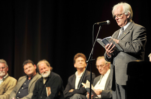 Komáromi Gabriella a hetvenedik évét töltötte be, s mint mondta: annak idején alig várta, hogy tizenhét éves legyen. Akkor úgy tűnt, ez soha nem fog eljönni. Utána pedig minden év olyan gyorsan suhant el, hogy el sem tudja hinni. Egy biztos, mondta az irodalomtörténész-tanárnő: szorongásból jelest adna magának. A hatvanadikba lépő Kőbányai János nem szereti az ünnepeket: a fontos dolgok számára a hétköznapokon történnek. Jelenleg a „Két évszázad magyar zsidó költészet” című hatalmas gyűjteményen dolgozik, ezt szeretné mihamarabb befejezni. Buda Ferenc melankolikus, barátságosan meleg hangján nyugtázta, hogy minél tovább él az ember, annál több barátja megy el. Ma már jobban örül a gyerekei, unokái születésnapjának, mint a saját hetvenöt évének. A felolvasott két rövid versében is megcsillant az a rejtetten derűs életbölcsesség, fanyar irónia, amely olyan jellemző megszólalásaira is.