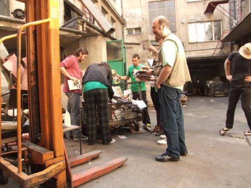 Előbb viszont még kukázunk is! A Forum udvarán egy bazi nagy konténer, benne megannyi kincs – (naná!) újságszerkesztőség, könyvkiadó és nyomda –, derékig merülünk a kultúra mocskában. Amilyen disznó vagyok, roppantul élvezem.