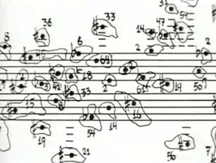 Cage forradalmasítja a zeneszerzésre és az alkotásra vonatkozó elképzeléseket, új fogalmat vezet be, a véletlent. Ez sem előzmény nélküli, Duchamp már a 20-as években vizsgálta, megtalálhatjuk Mallarmé-nál is, zeneileg pedig visszamehetünk Mozarthoz és a görögökhöz, de centrálisan és mindent meghatározó módon Cage jeleníti meg. A személyhez köthető akarat, alkotói szándék, a személyes helyébe az univerzális lép. Konkrét mű esetében így a papíron véletlenszerűen megjelenő ábrákból alkothatunk sorozatokat.