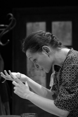Hámori Gabriella a kisegérrel az Üvegcipőben (Gordon Eszter fotója)