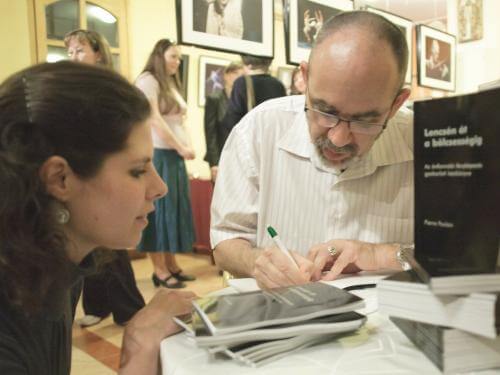 Pierre Poulain, akit Magyar Myrtill tolmácsolt, öt napot töltött Magyarországon, ez alatt – elmondása szerint – több száz fotót készített, amelyek közül néhányat láthatott is a könyvbemutatón összegyűlt ötven-hatvan fős közönség. „Most járok először Budapesten, és örülök, hogy megismerhetek egy más kultúrát, fényképészként pedig egészen új fényeket fedezhetek fel – hiszen ahogy minden embernek, éppúgy minden városnak is megvan a maga egyedi fénye” – mesélte a francia származású fotóművész, aki előadásában elsősorban a művészet lényegét érintő kérdésekkel foglalkozott.