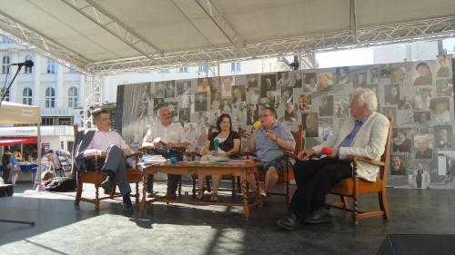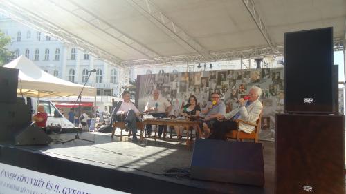 Az első igazi forró nyári nap várta az Ünnepi Könyvhét kezdetére érkezőket a budapesti Vörösmarty téren, ahol a hagyományos fúvószenekari nyitány után Ferdinandy György mondott ünnepélyes megnyitót.