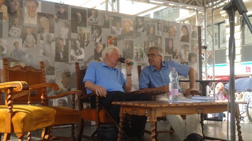 A könyvheti színpadon, az Oroszlános kútnál óráról-órára más írók, költők jelennek meg, hogy a moderátor kérdéseire meséljenek legújabb kötetükről, életükről, terveikről. Ungvári Tamás, Ferdinandy György, Magvető-antológiák és Udvariatlan szerelem – ízelítő a beszélgetésekből.