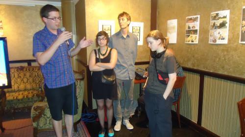 Jáger Attila az író világnézetében, írásaiban megjelenő felelősséget hangsúlyozta, mint kulcsfogalmat, amely megerősítette személyes kötődését. „Ugyanakkor Örkény nem ítélkezik – folytatta a fiatal képzőművész –, az ítéletet mindig ránk bízza.” Szimpátiájának „elméleti részét” az irónia fogalma iránti kíváncsiság jelentette, és valójában ez vezette el a képregény műfajához – bár saját munkáira kivételként tekint, mint nem hagyományos képregényrajzokra. Miután kiposztolta a Facebookra elképzelését, partnerre is akadt a megvalósításhoz Remsey-Kovács Nóra személyében, és ehhez csatlakoztak később még négyen. A kiállításmegnyitón megszólaló alkotóknak rögtön megtaláltuk a közös nevezőjét: mindegyikük egy kicsit „kivételként” emlegette műveit a képregény műfaja szempontjából. Ebből világosan kirajzolódott: a képregényt tág és rugalmas kategóriaként érdemes elgondolni, amelyben jól megfér a karikatúraszerű illusztrációsorozattól a tusrajzig szinte minden.