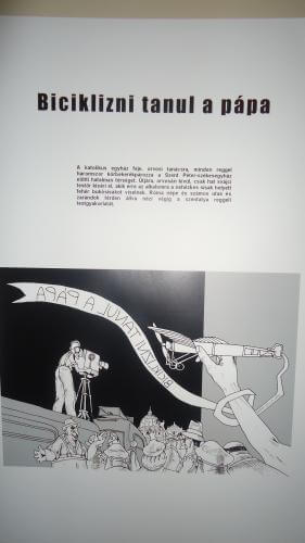 A Hadik galériáján berendezett szalon ez alkalommal egy kicsit átalakult: a körben elhelyezett, pogácsával megrakott asztalok és köréjük rendezett székek még családiasabbra varázsolták a kis teret, a pódium helyét pedig egy képernyő foglalta el, amely szintén szerepet kapott mint „kiállítási tárgy”. A falakat szerdától a kávéházban eddig sosem látott műfaj: képregények díszítik. Az újonnan megnyílt kiállításnak nem kisebb aktualitása van, mint Örkény István 100. születésnapja, melyről a Hadik júliusban több rendezvénnyel is megemlékezik.