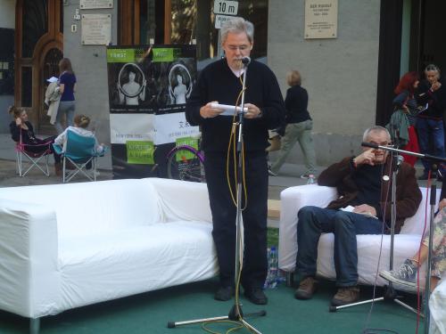A múzeumalapító emlékére szervezett Ernst Utcafesztivál vasárnap is folytatódott: a zenei programok, a tárlatvezetések, a performanszok mellett az újabb Ernst-novellákat Háy János, Kemény István, Saly Noémi és Szávai Géza szólaltatták meg Szörényi László moderációja mellett.