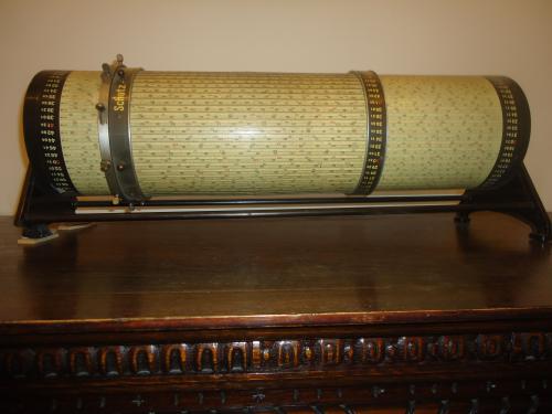 Búcsúzóul a főigazgatói szoba meglátogatását iktattuk be. Itt azonban nem magát a főigazgatót, hanem egy nála sokkal idősebb, nagy múltú tárgyat csodálhattunk meg, mely egykor nélkülözhetetlen volt a Hivatal munkájához. Egy korabeli számológépről van szó, melynek működését egyszer egy látogató el tudta magyarázni – mesélte Rózsa Dávid –, de sajnos azóta sem tudja megfejteni senki. A különös szerkezetet nézegetve eltöprenghettünk azon, hogyan mossa el az idő mindenkori, legmagasabb szintűnek vélt tudásunkat – még egy könyvtárban is.