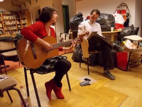 Nem szokványos helyen szólaltak meg Weiner Sennyey Tibor versei és Szeder-Szabó Kriszti dalai a Melodisztikből. Adományként összegyűjtött ruhákat, tárgyakat rejtő zsákok között, a VIII. kerületi Területi Gyermekvédelmi Szolgálat épületében hallgattuk őket.