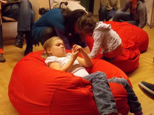 A tetőtéri, szépen helyreállított teremben a költő barátaival és a TEGYESZ három munkatársával beszélgettünk, majd ültünk le körben, meghallgatni Szeder-Szabó Kriszti gitárjátékát és Weiner Sennyey Tibor verseit. Mielőtt ők a valós és képletes húrokba csaptak volna, az intézmény vezetője röviden beavatott bennünket, hol is vagyunk. Ez az átmeneti otthon, sajnos, mindig túltelített, jóval több gyermek elhelyezését kell megoldani, mint amennyire kapacitásuk lenne. Budapesten e nyolcadik kerületi épületen kívül még két hasonló intézmény működik. A helyzetükre való tekintettel mindig szívesen fogadják a jobb állapotú holmikat – a gyerekeknek ez óriási segítség.