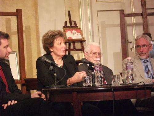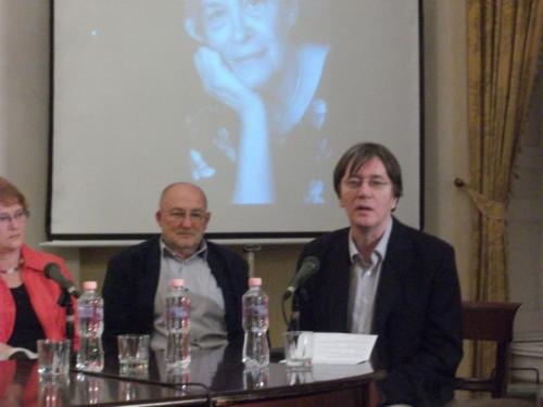 Mészáros Sándor irodalomkritikus, a beszélgetés vezetője szerint Polcz Alaine élettevékenysége fontosabb volt, mint írói munkássága, majd rögtön hozzátette: ezzel nem szeretné a kettőt szembeállítani. Az író Mészöly Miklós nem gátolta feleségét írói tevékenységében, mint ez többször elhangzott vádként, hanem segítette, például, az Asszony a fronton című, talán leghíresebb regényének létrejöttében. A kritikus a jelenlevőktől elsőként azt kérdezte, mi jut elsőként eszükbe Polcz Alaine-ről, majd szóba került az írónő személyisége, viszonya a hithez, valláshoz, végül a tevékeny asszonyi életet élő nő, amihez hozzátartozott, hogy férjének a régi értelemben vett társa volt.
