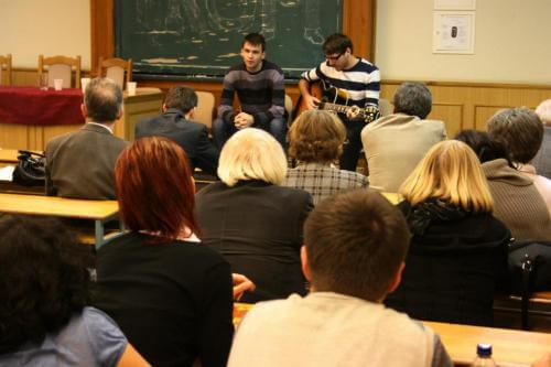 A konferencia első napjának programja két hallgató, Rozmán Kristóf és Varga Richárd (Nyugat-Magyarországi Egyetem) Eszmélet-interpretációjával zárult, mely különleges példája volt szöveg és zene egymást kiegészítő, értelmező és (újra)alkotó működésének.