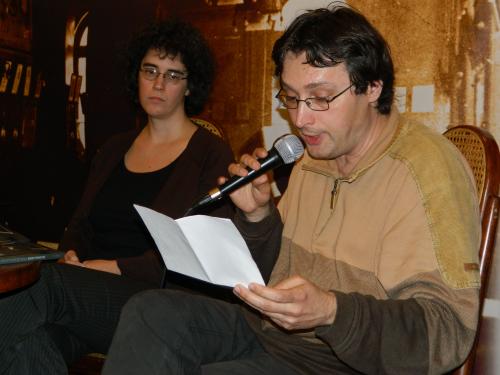 E beszélgetés rendhagyó módon a felolvasással kezdődött, ami jó döntésnek bizonyult ahhoz, hogy belehelyezkedhessünk Edina egyéni hangú, monotonitásában is dallamos szövegvilágába. A Nincs és ne is legyen „hősei foglyok” – fogalmazta meg Keresztesi József kritikus, amikor az elhangzott részlet után felolvasta a novelláskötetről írt rövid szövegét. Ebben utalt a korábbi Szvoren-kötetről született kritikája egyik megállapítására, amely az újabb könyvre is érvényes: hősei „vigasz nélküli zártságban, ám annál sokszínűbben” mutatkoznak meg. Legtöbbször valamilyen csapdahelyzetben látjuk őket, melyre védekezésképp kényszercselekvésekkel, környezetük, tárgyaik aprólékos számbavételével reagálnak. Gyakran autisztikus, sérült gyerekek vagy felnőttek ők, a társadalom szövetén kívül esők, akiknek az egyetlen valóság, amelyben el tudnak igazodni, a részletgazdag tárgyi világ.