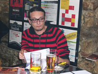 Fischer Botond 1982-ben született Nagykárolyban, a Babeş–Bolyai Tudományegyetem néprajz-magyar szakán tanult. Szoftverértékesítőként, majd újságíróként dolgozott szülővárosában. Jelenleg a BBTE bölcsészkarán spanyol szakos hallgató. Az Irodalmi Jelen Debüt rovatában jelentkezett először versekkel, 2007-ben. További költeményei a Helikonban és a Látóban jelentek meg, rövidprózáit a Helikon és a Korunk publikálta – mutatta be az est vendégét a Bretter Kör elnöke, Lovassy Cseh Tamás költő, majd a meghívott olvasta föl verseit és az Alsógolgota című rövidprózáját.