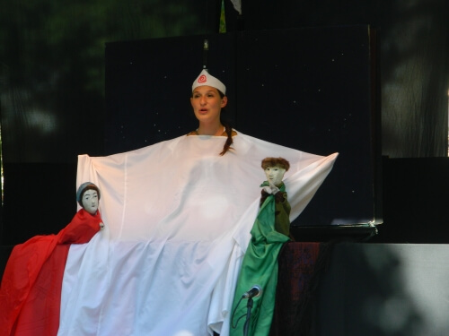 Vasárnap a nagyszínpadon a Térszínház előadásával folyatódtak a műsorok. Weöres Holdbéli csónakos című színművét adták elő, bábok és színészek segítségével. Weöres legismertebb drámájában egybeszövi az antik mitológia, a magyar népmese és a klasszikus bábjáték elemeit, hőseit. Az előadás is szépen ötvözte a különféle mesevilágok több ezer éves távlatából születő csodás egyveleget.