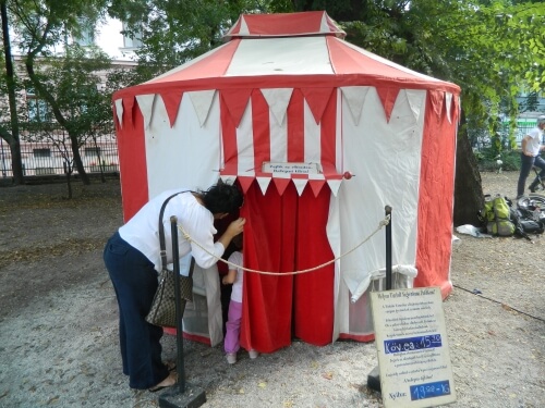 Aprócska cirkuszosbódéból kettő is akadt, ezt például körbejárva az ablakokon át egy egész történetet lehetett végignézni...