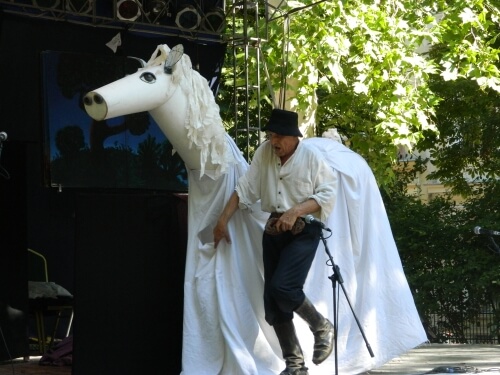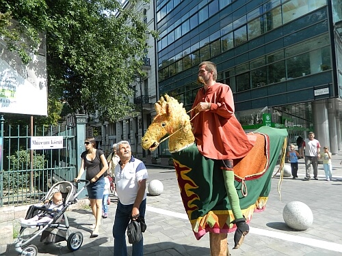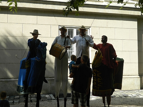 Az esemény óriásbábos, gólyalábas felvonulással kezdődött a Garabonciás Gólyalábas Utcaszínház és a Bab Társulat közreműködésével. A Kálvin tér ilyet sem sűrűn lát: épp befordul a Múzeum utca sarkán az egyik "lovas"