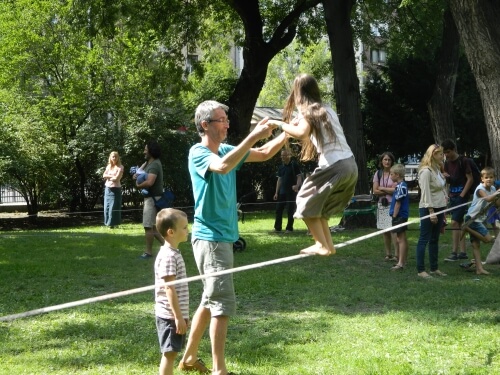 Hatalmas sikere volt a gumikötélnek is, amin az egyensúlyozást lehetett gyakorolni