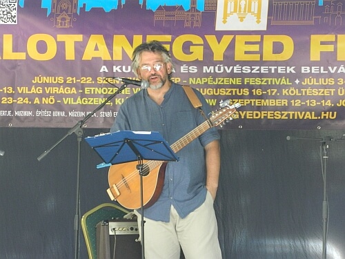 A zenész, aki a Kosbor mellett rendszeres fellépője Turek Miklós versszínházi estjeinek, gitárkísérettel előadta a költőtől A rózsabárka című verset. Az utca túloldalán a Múzeumkertben a Kaláka zenélt, de cseppet sem zavarta egymást a kétféle muzsika, hiszen a Faludy-album épp a Gryllus Kiadó jóvoltából jelenhetett meg, mesélte Gerendás