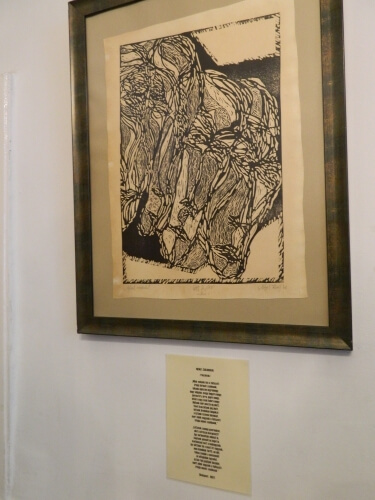 A kiállított grafikák alatt olvasható az ihlető vers is