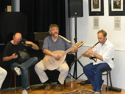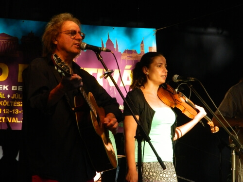 Balra a Makám zenekar vezetője, Krulik Zoltán, jobbra Kuczera Barbara.
