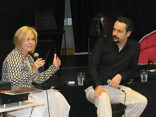 Eközben a szomszédos Múzeum utcai egykori TIT-épületben található Muzikum Pódiumon elkezdődött Turek Miklós közönségtalálkozója. A színművész éppen tíz éve kezdte el a Versszínház hagyományát, ebből az alkalomból faggatta Kozári Réka, az est moderátora