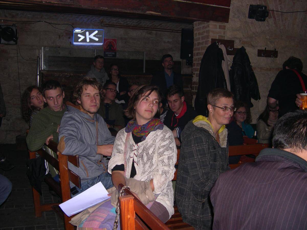 A másodéves magyar–finn szakos kézdivásárhelyi alkotó lenyűgöző bátorsággal kezdett bele szövegei felolvasásába a zsúfolásig telt nagypincében. André Ferenc, a kör újdonsült elnökének szervezői képességét külön meg kell dicsérni, hiszen ilyen sokan évek óta nem voltak a Bretter Körön. A pincérek pótszékeket és padokat hoztak, hogy mindenki le tudjon ülni, ezért a kezdés el is tolódott bő húsz perccel, de nem bántuk meg, hiszen izgalmas estnek lehettünk a részesei.