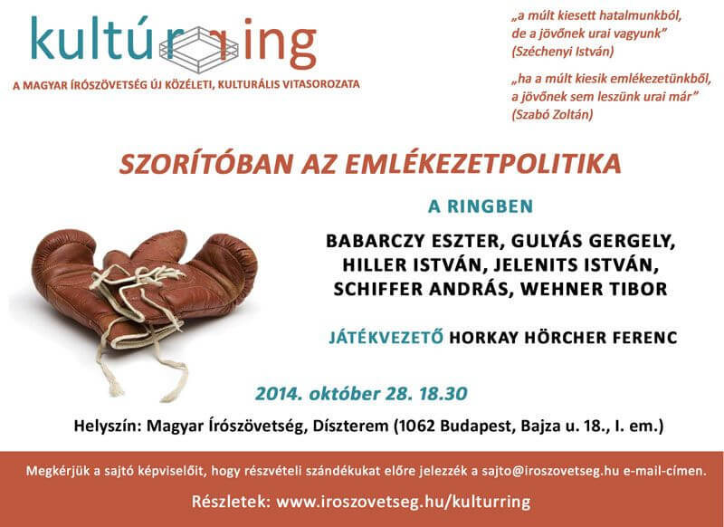 A Magyar Írószövetség ígéretes közéleti, kulturális vitasorozatot indított útjára. Szentmártoni János, az Írószövetség elnöke az első KultúrRing-est alkalmával kijelentette: olyan témák felvetésére törekedtek, melyek a székházon kívül is sokakat foglalkoztatnak. Beismerte, hogy a vitasorozatot hirdető plakát arculatában (két bokszkesztyűt ábrázol) és nevében is szándékosan provokatív. Ám itt az álláspontok ütköztetése, megvitatása méltóságteljes keretek között, kulturált módon történhet.