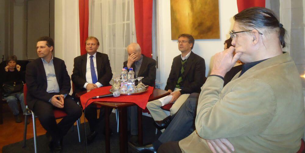 Horkay Hörcher Ferenc eszmetörténész, kritikus moderálta a beszélgetést, melyben Hiller István, Schiffer András, Jelenits István, Babarczy Eszter, Gulyás Gergely és Wehner Tibor vett részt.