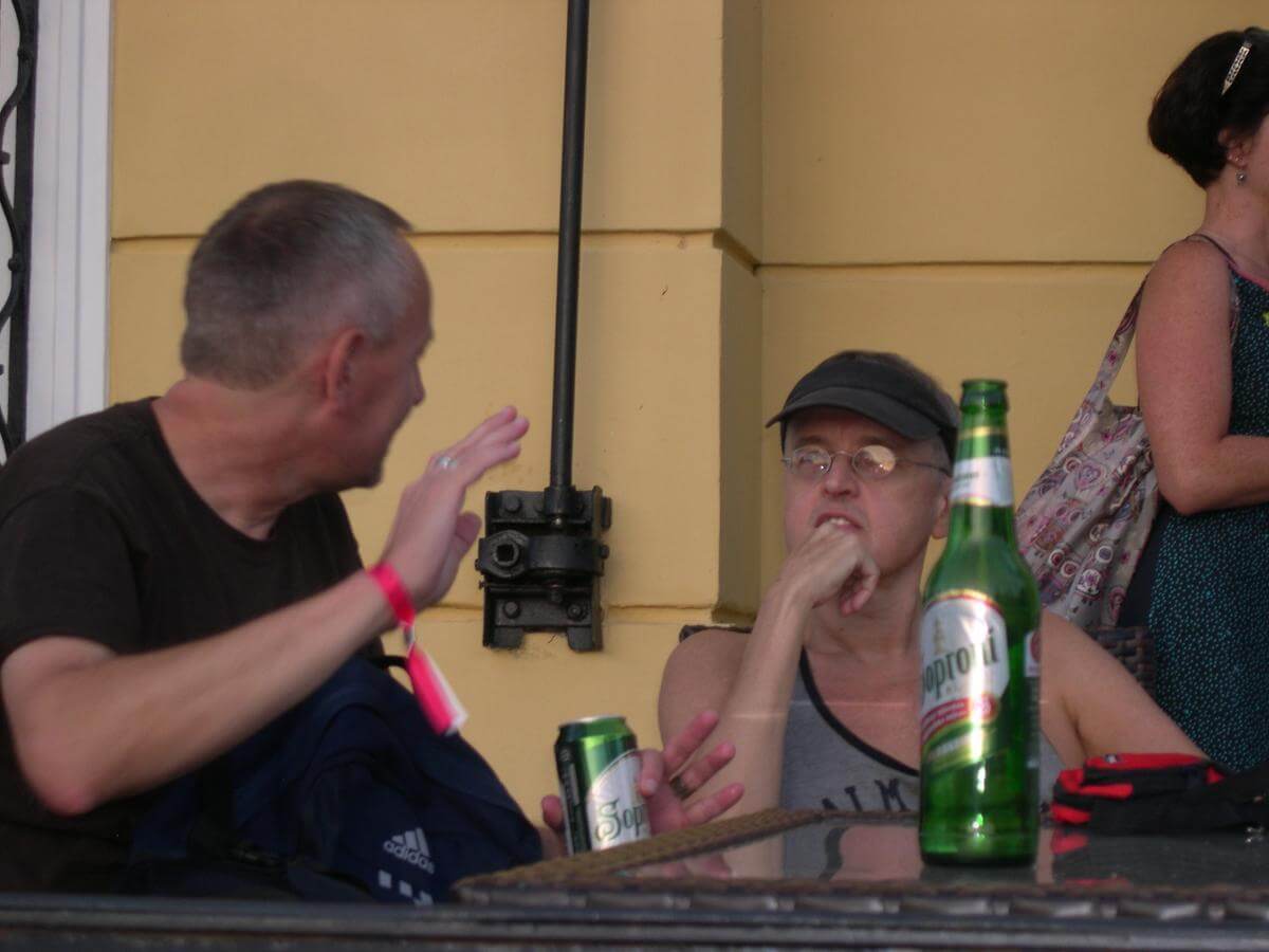 Ez már az ebéd utáni szieszta, ahol ugyancsak előkerülnek a kultúrpolitikai kérdések, de szerencsére nem csak erről folyik a beszélgetés. Egy erdélyi számára az irodalmi élet ilyen irányú átpolitizáltsága nagyon fura, szerencsére Erdélyben csak egy írószervezet van, s nem alakultnak ki ilyen irányú konfrontációk az írók, költők és ideológiák mentén