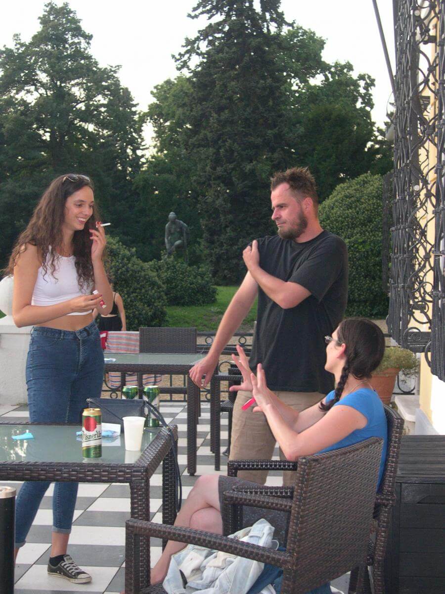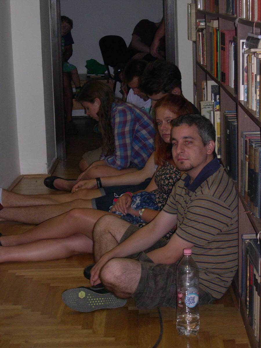 Az előadás után a tábor férfilátogatóinak nagy része elment focizni, egy-két férfi maradt csak mutatóban. A meccs és az azt követő frissítő zuhany miatt az esti beszélgetések, könyvbemutatók türelmet próbálóan sokat csúsztak. A táborlakókat azonban ez különösebben nem zavarta, elücsörögnek a teraszon, beszélgetnek vagy sétálnak a lugasban