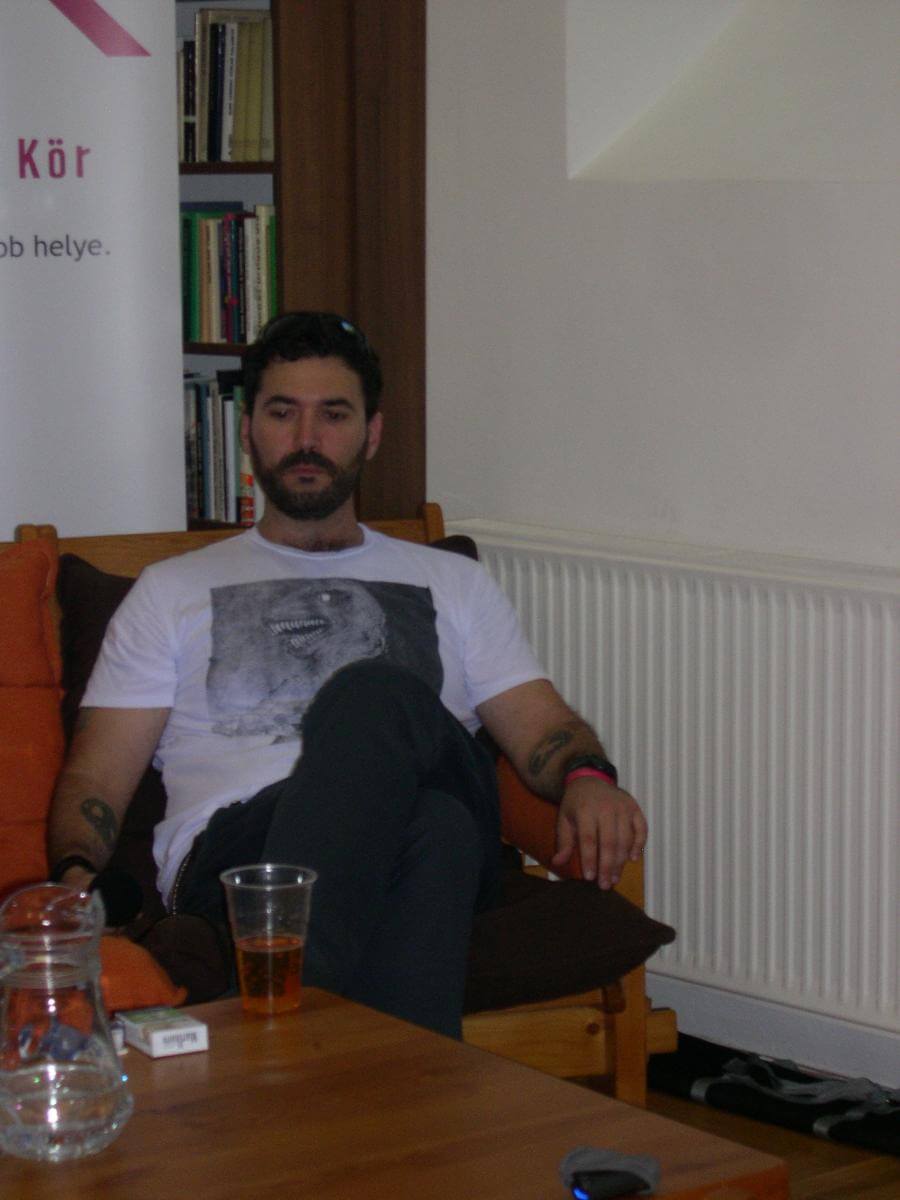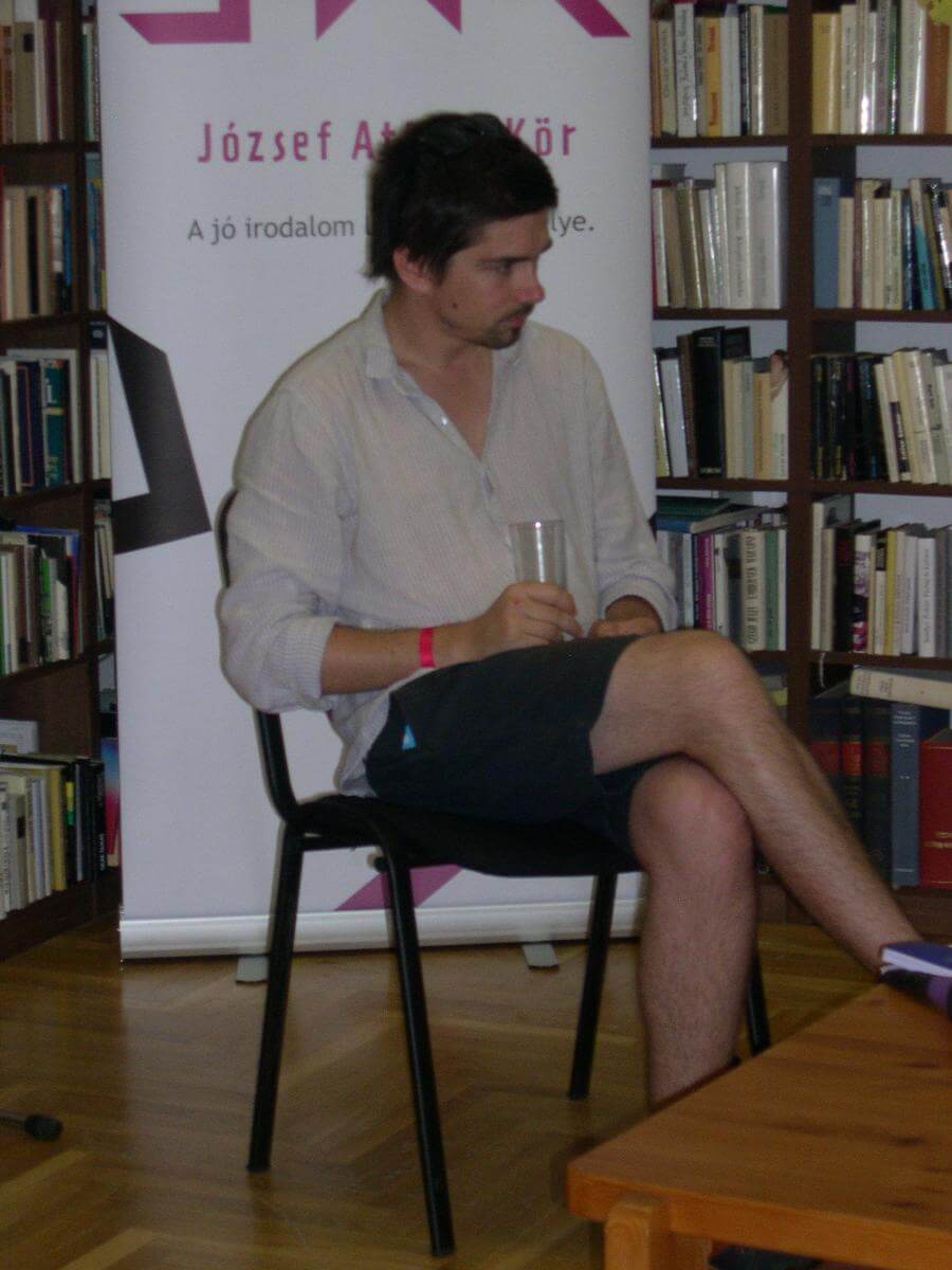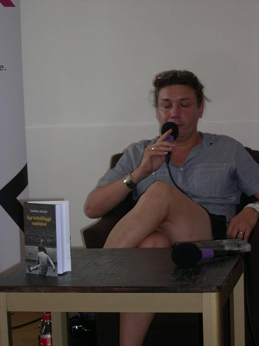 Futball és identitás – Gazdag József, Mán-Várhegyi Réka, Kiss Tibor Noé beszélgetése labdarúgás és irodalom kapcsolatáról, amelynek apropója Gazdag József Egy futballfüggő naplójából című tárcakötete volt. Képünkön Kiss Tibor Noé, aki valamikor szenvedélyes focista volt