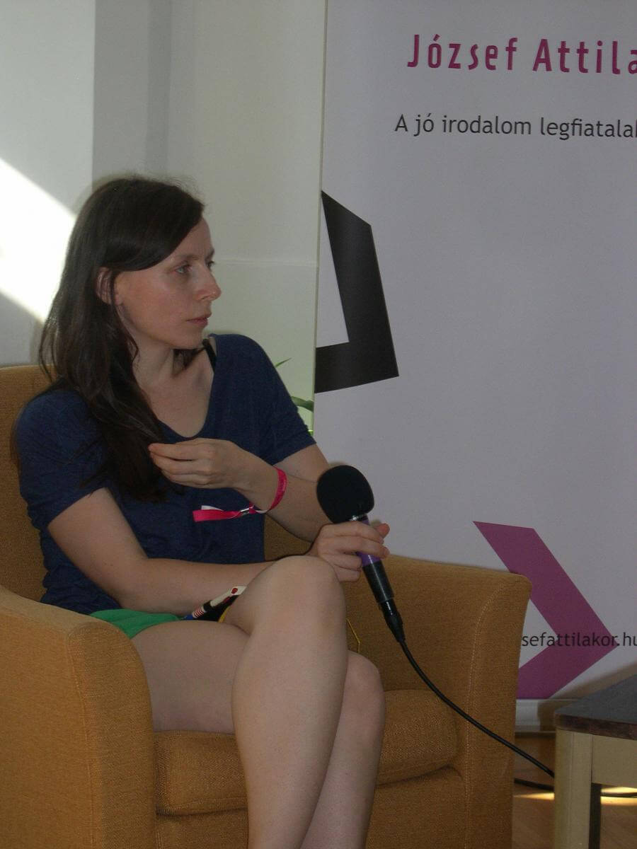 Kiss Noémi a Sovány angyalok című könyvével debütált regényíróként. A regény műfaját ugyanis eddig még nem próbálta ki. Számára is fontos az önéletrajzi jelleg, de úgy véli, a magántörténetek átalakulnak az írás folyamán. Az esten fölmerült a női irodalom témája is. A könyvek szerzői és a beszélgetést vezető Mán-Várhegyi Réka úgy látják, a női irodalom mára már teljesen átalakult, míg régebb a női szerzők könyveit önéletrajzi lektűrként kezelték, ma már ritkábban merül fel az ilyen irányú beskatulyázás
