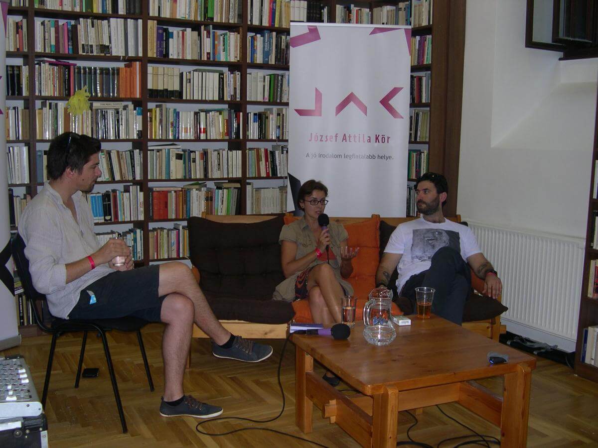 Hogyan vállaljanak szerepet a különböző ideológiákat képviselő írószervezetek a kultúrpolitikai és a magyar közéletet érintő kérdésekben – fontos, ugyanakkor kényes témákat érintő beszélgetéssel indult a JAK-tábor negyedik napjának délutáni programsorozata. Bojkott vagy a párbeszéd célravezetőbb a magánbeszélgetésekben is egyre gyakrabban fölmerülő irodalompolitikai kérdésekre – Gaborják Ádám, Gács Anna és Fehér Renátó erre próbáltak választ találni. Egyértelmű megoldás nincs a különböző ideológiák mentén kialakult konfliktusokra, abban azonban egyetértettek, nem szabad személyes sérelemként kezelni az esetleges véleménykülönbségeket, hanem szakmai stratégiákat kell kialakítani azzal kapcsolatban, hogy is állunk hozzá a jelen magyar közélethez és kultúrpolitikához. A vita tárgyát képezte a Tokaji Írótábor is